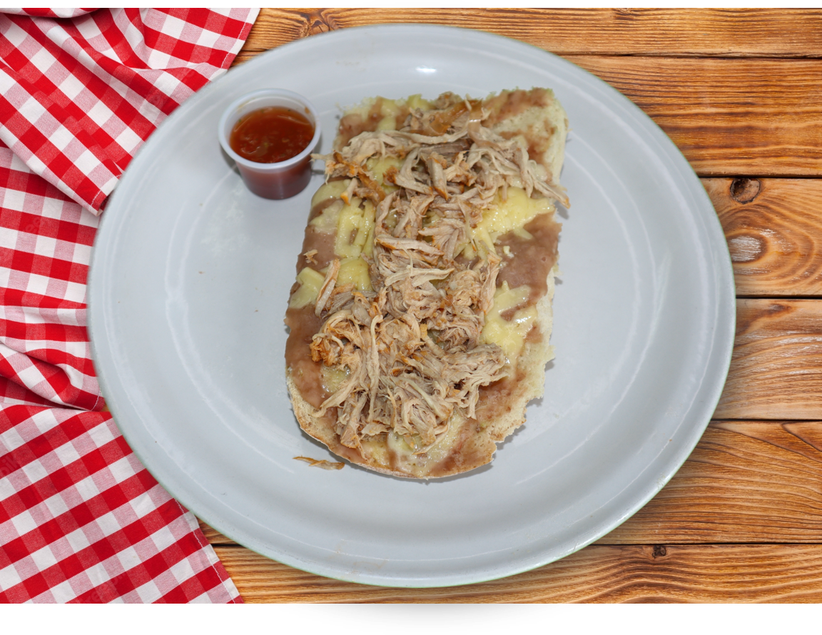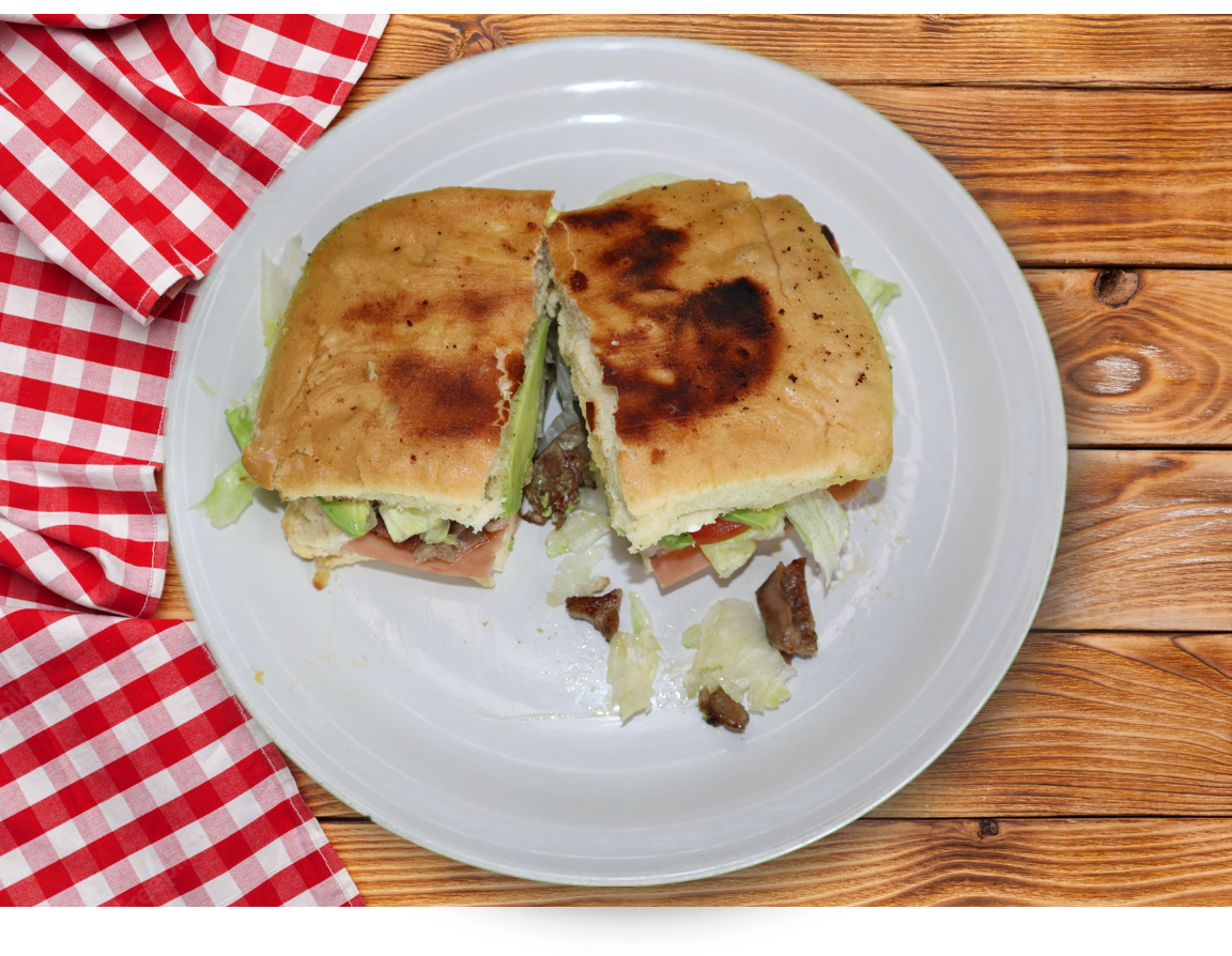 Torta de carne asada con jamón, queso, lechuga ,tomate aguacate ,crema y mayonesa