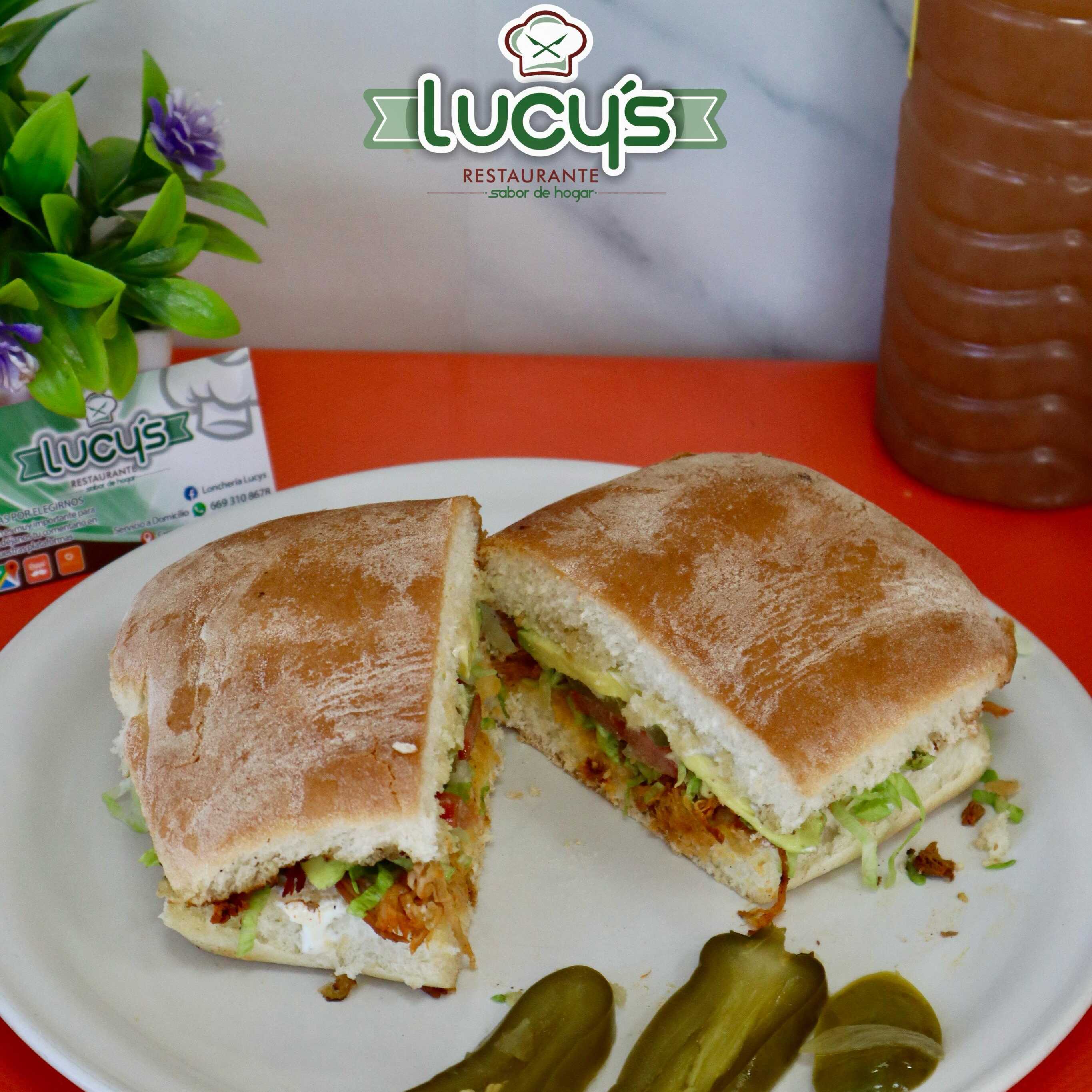 Torta de pierna, jamón ,queso, lechuga ,tomate aguacate ,crema y mayonesa