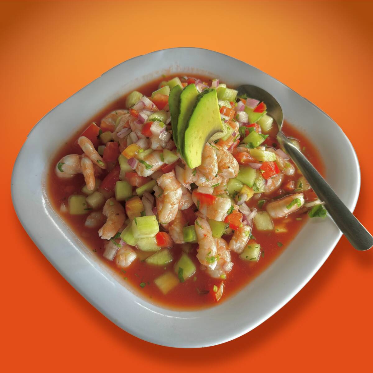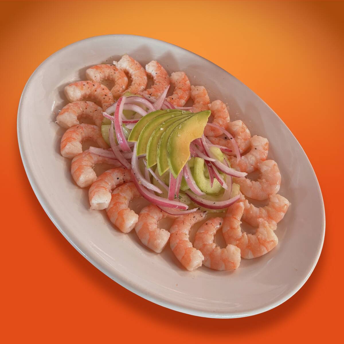 Camarón crudo y cocido en mezcla clásica estilo Mazatlán.