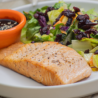 Corte de Salmon (250 gr) sellado acompañado de ensalada tropical.