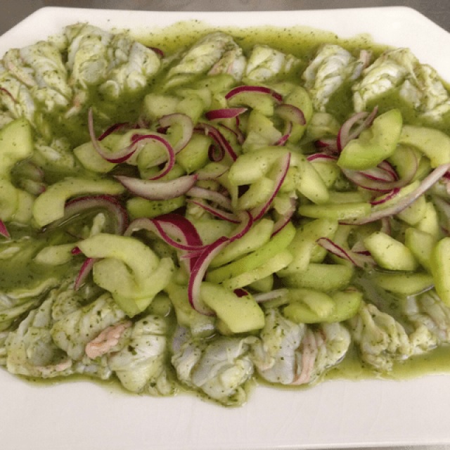 Preparado con camarón, pulpo a la crema y flameado al vino blanco.