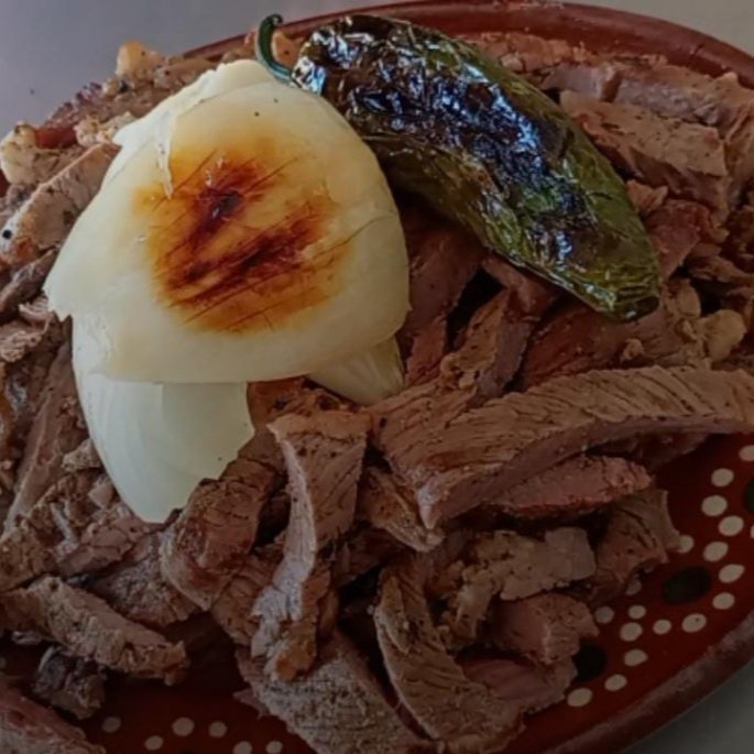 1 Kg de Sirlon acompañado de salsa tatemada, ensalada, cebolla, tortillas y chile toreado.