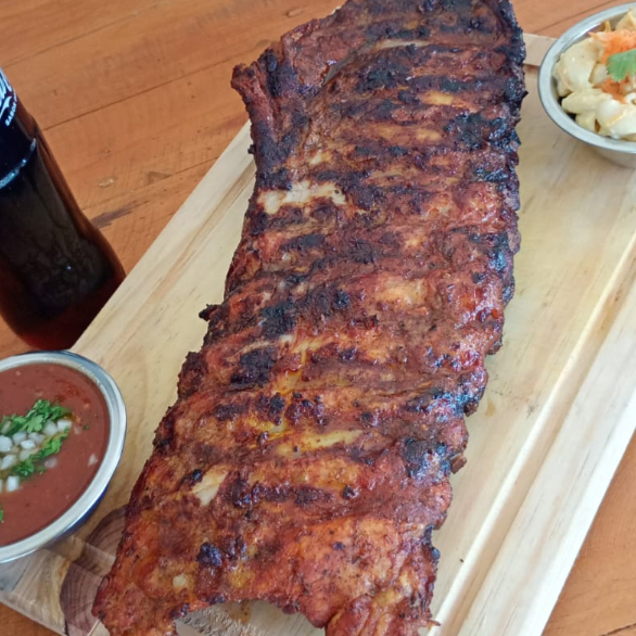 1 kg de costilla bbq incluye sopa verde, chile toreado.