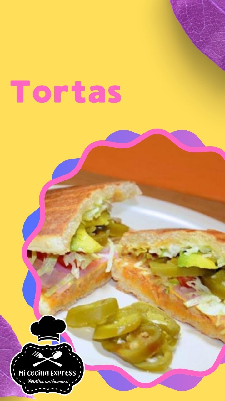 Torta rellena de cochinita pibil acompañada con papas fritas.