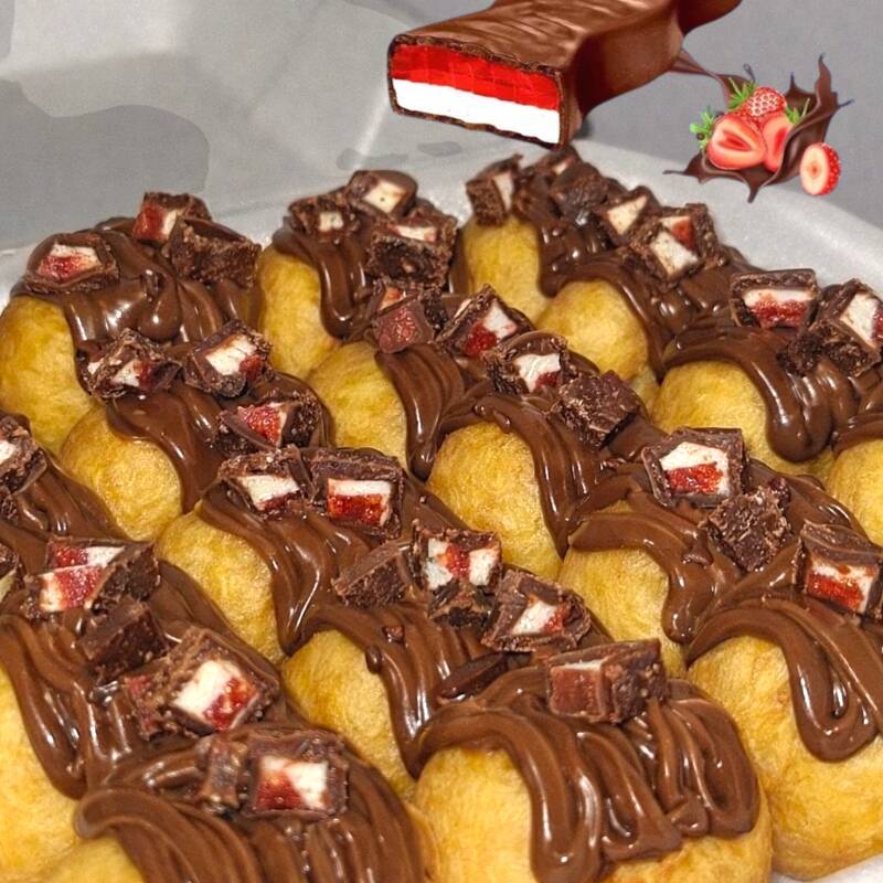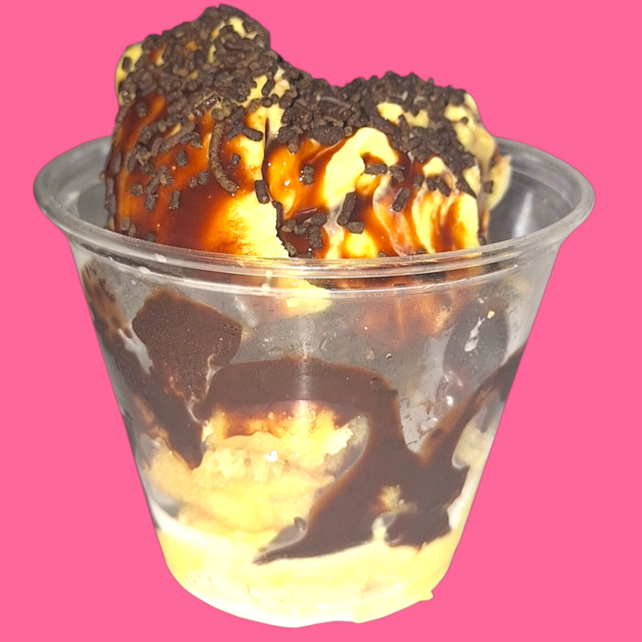 Deliciosas mini donas en tozos con Nieve de vainilla o fresa y encina hershey's y chispas de chocolate. Elegir sabor de nieve, sabor disponible vainilla y fresa.