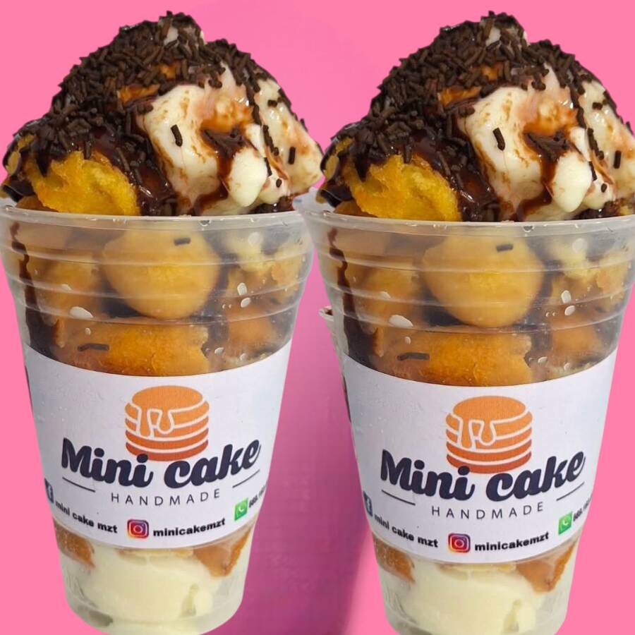 Es una combinación de mini donas preparadas al momento, la cual tiene una hilera de cada sabor; azucaradas, azúcar con canela y mini donas decoradas, tal cual asi en la imagen.
