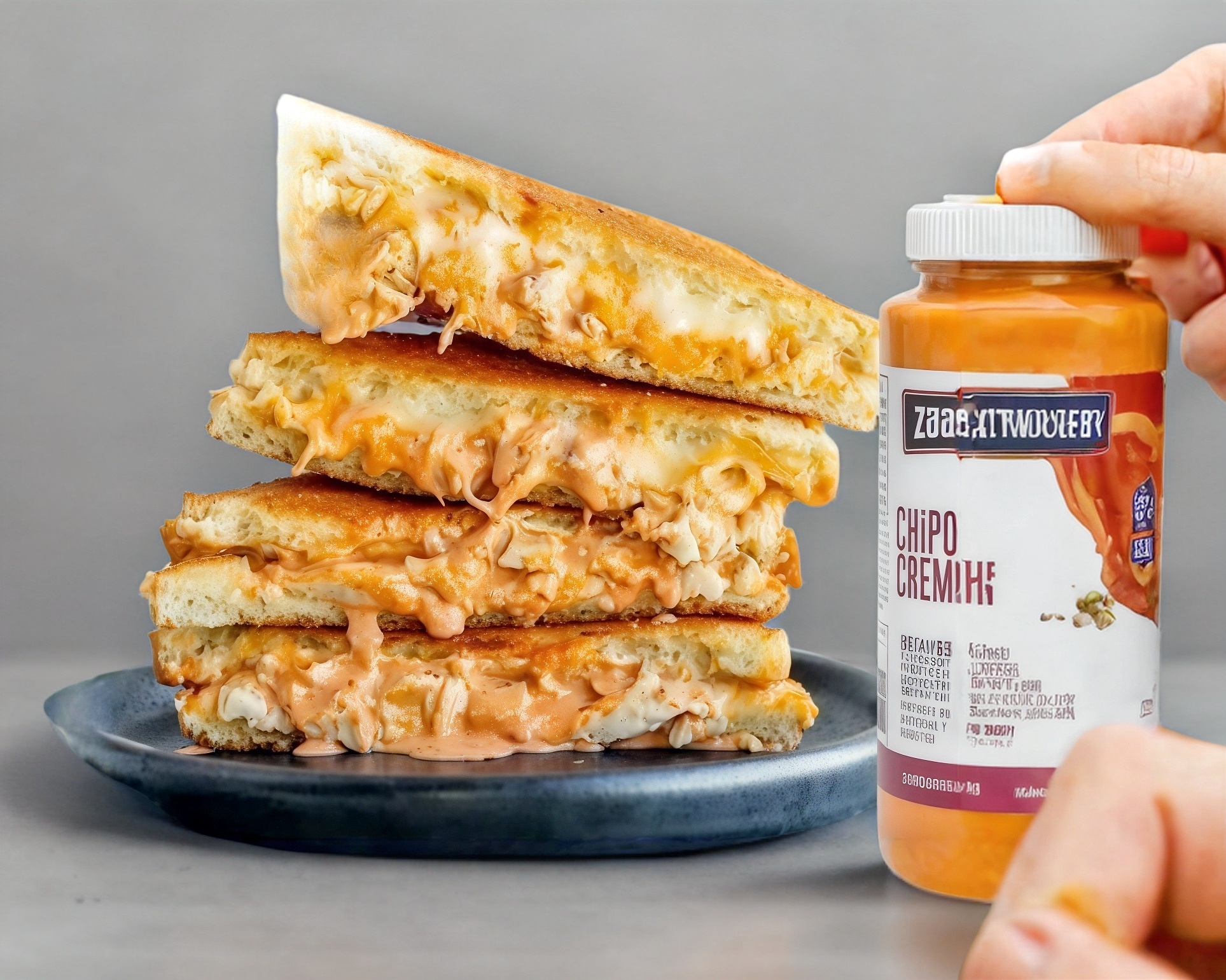 3 capas de pan integral ,pollo en crema de chipotle,jamón ,queso