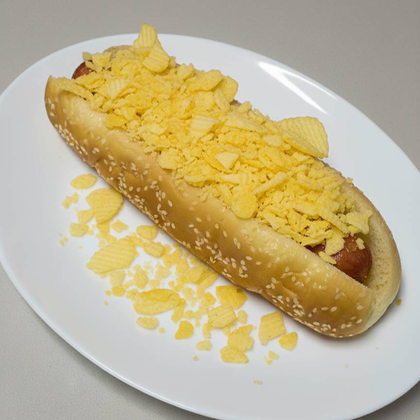 Pan, salchicha más ruffles.