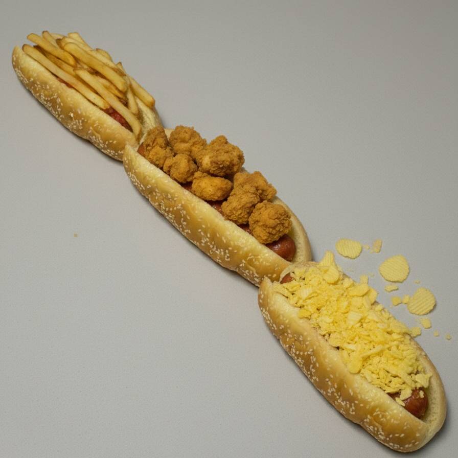 Hot dog con papas + Hot dog con ruffles + Hot dog con boneless