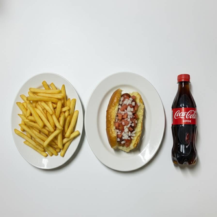 Hot Dog Embarazado con una orden de papas a la francesa y refresco