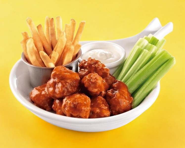 Incluye 10piezas, 1 salsa a elegir, papas a la francesas (orden individual), aderezo ranch y vegetales.