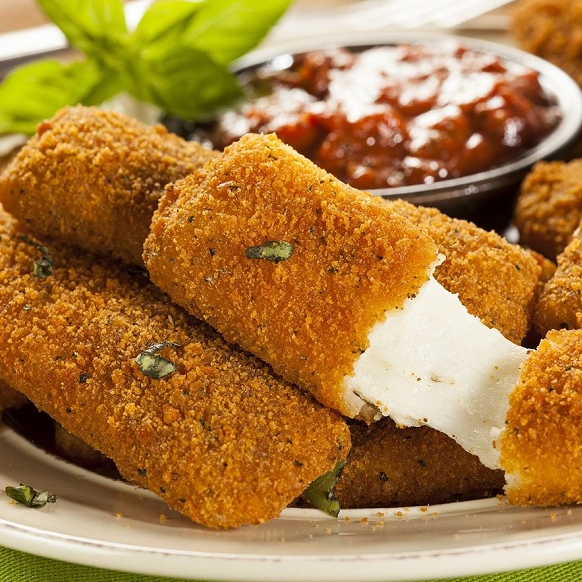 Pechuga de pollo crujiente empanizado, gratinado en queso chihuahua, queso amarillo, verduras (tomate, cebolla y lechuga) y aderezos (cátsup, mostaza y mayonesa), acompañada con papas a la francesas.