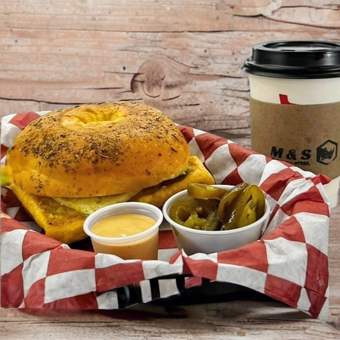 Baguel de Oregano, omelet (huevo), panela, aguacate, INCLUYE CAFE AMERICANO