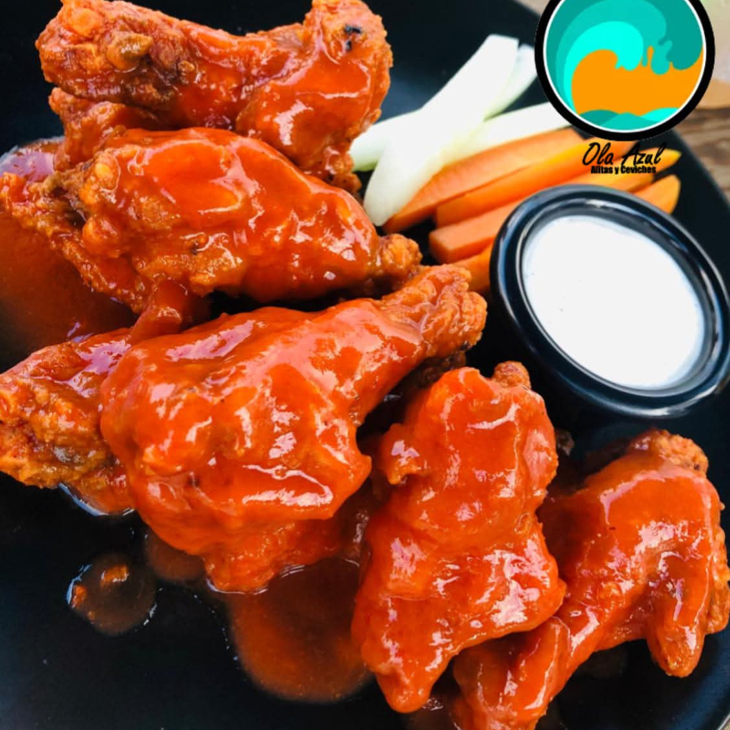 Orden de 10 pzas de Alitas con la salsa de tu preferencia, sobre una cama de papas francesas bañadas en queso chedar y ranch.