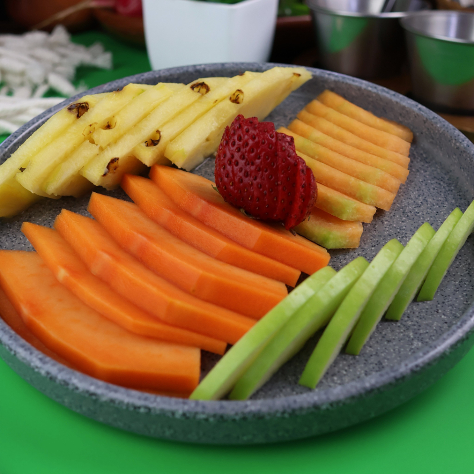 Fruta fresca de temporada (piña, melón chino, papaya y melón valenciano).