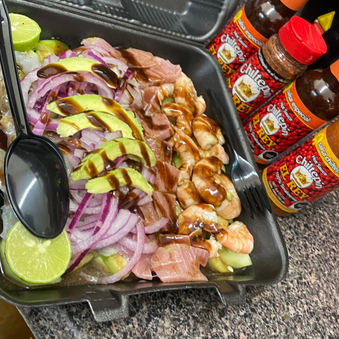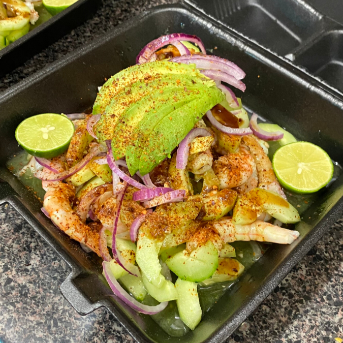 camaron en limon, camarón cocido y medallon de atún el favorito de la casa salseado