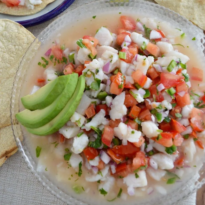 ceviche de cubos de pescado con limon sasonado con salsas de la casa