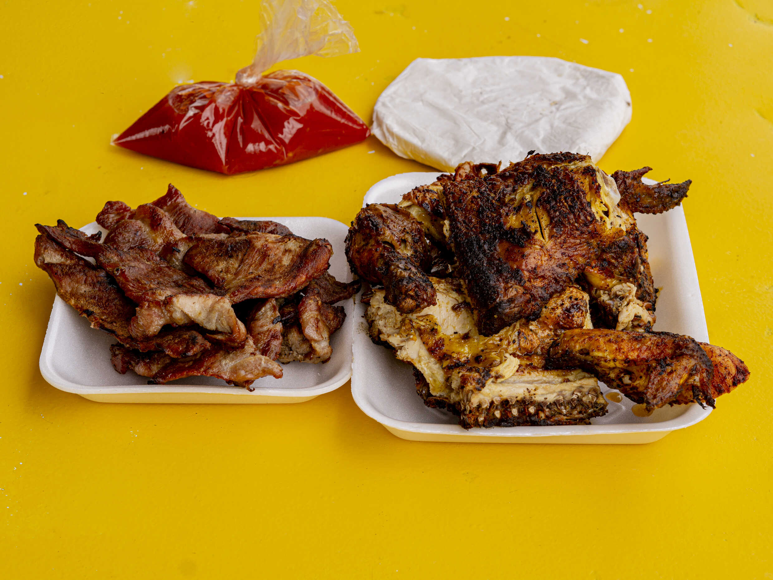 1/2 Kilo de Carne Asada de Puerco*1 + 1 Pollo*1-incluye papas fritas
