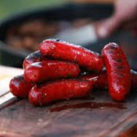 Rollitos de salchicha bañado con frijol, pierna, queso derretido, crema, catsup y queso cotija