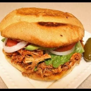 Telera, pierna, queso chihuahua, jamon, queso americano, lechuga, tomate, cebolla y aderezos