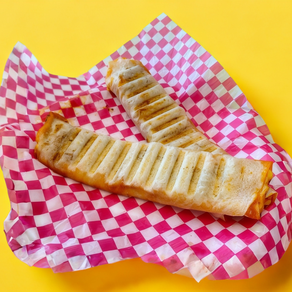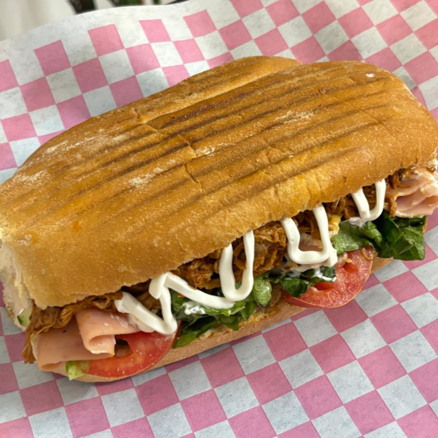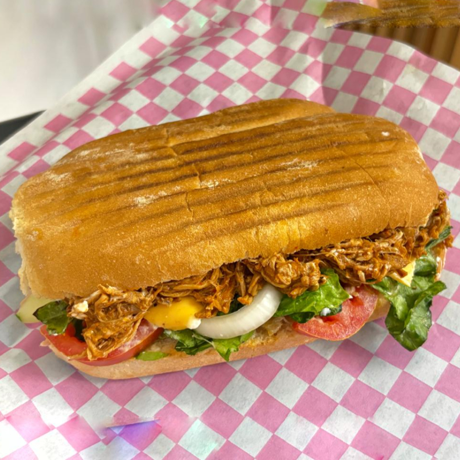 Queso Manchego, mayonesa, lechuga, tomate, pepino y cebolla, además de un aderezo a elegir