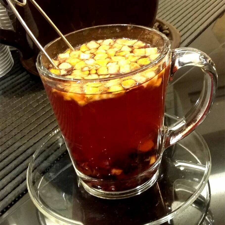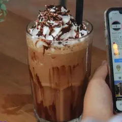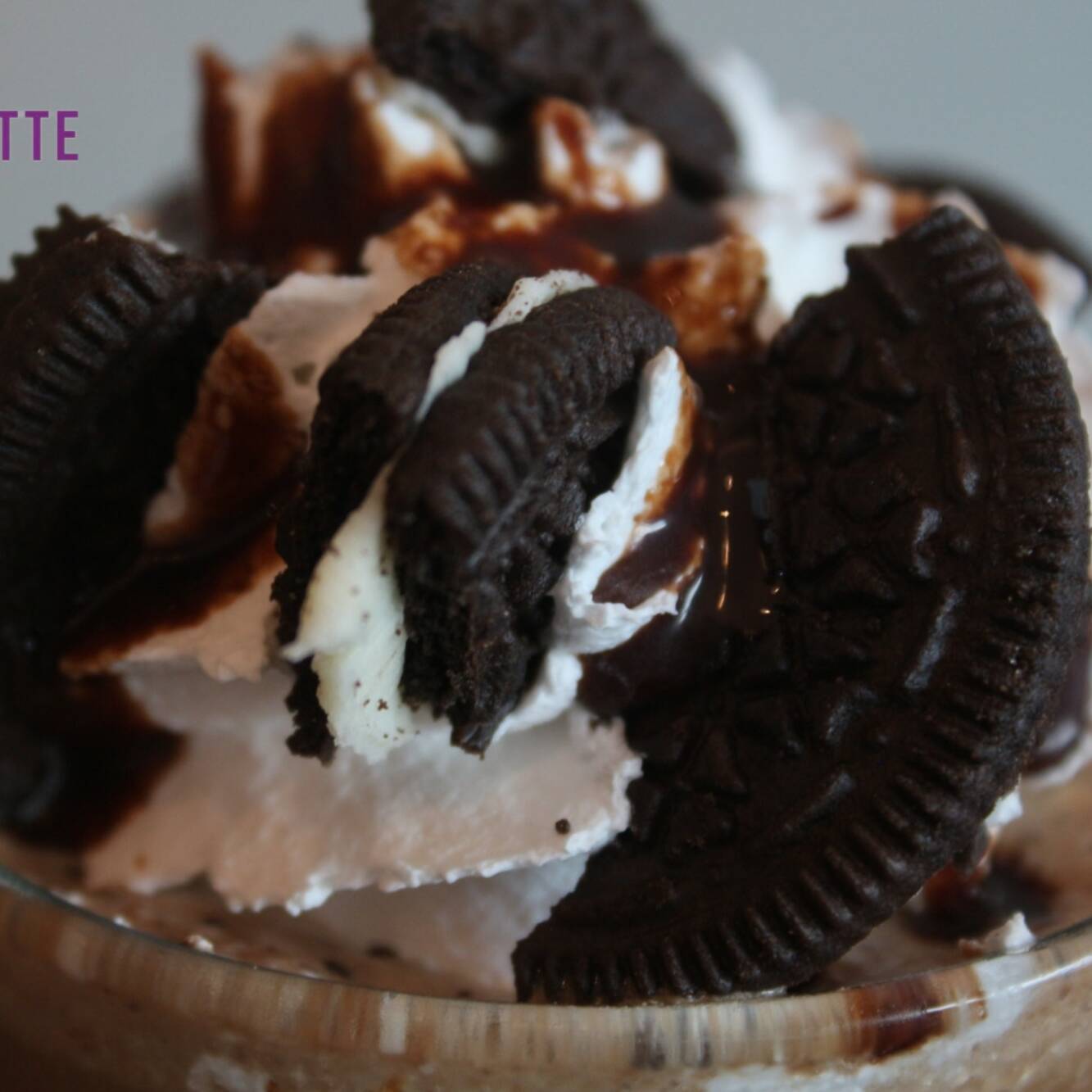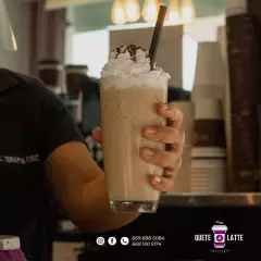 Crepa rellena de mousse de chocolate con plátano, rallada con cajeta y espolvoreada con nuez. Topping de crema batida y plátano.