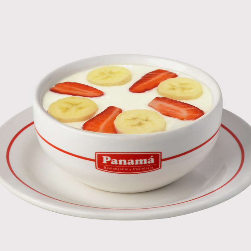 Combinación El poblano, Café americano, Vaso de fruta y Rebanada de pay de guayaba.