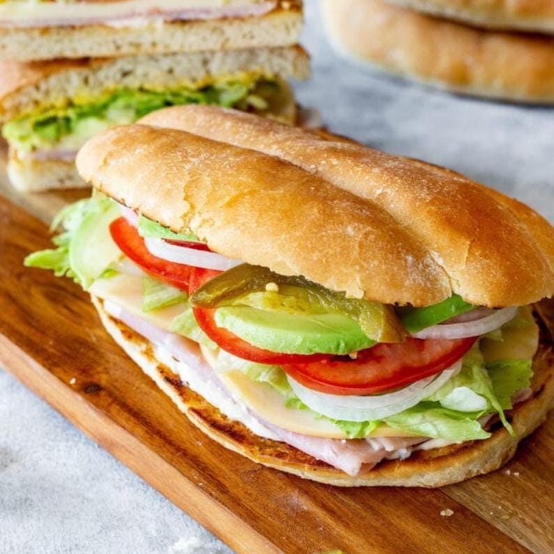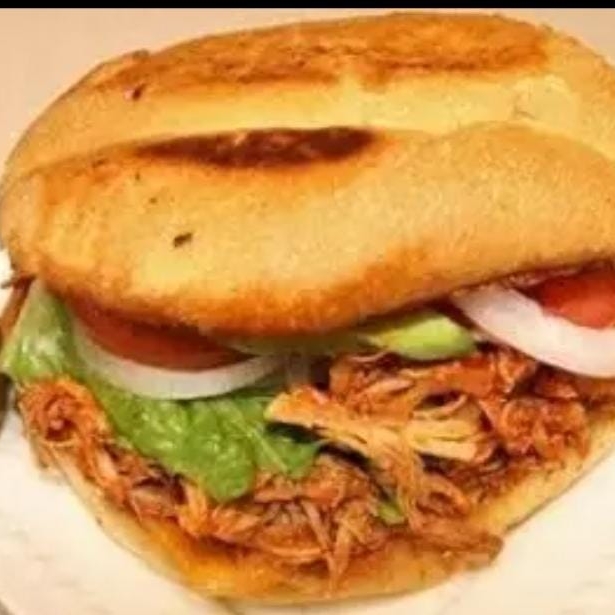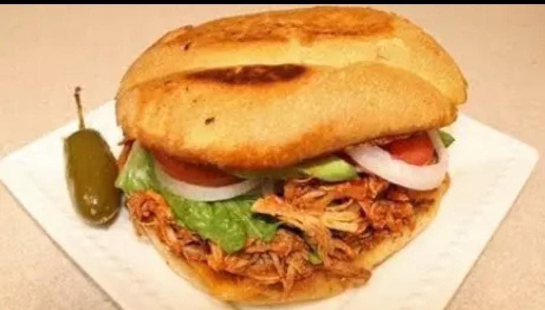 Pierna pan tortero con aderezo especial de la casa lechuga tomate capsu cebolla aguacate crema