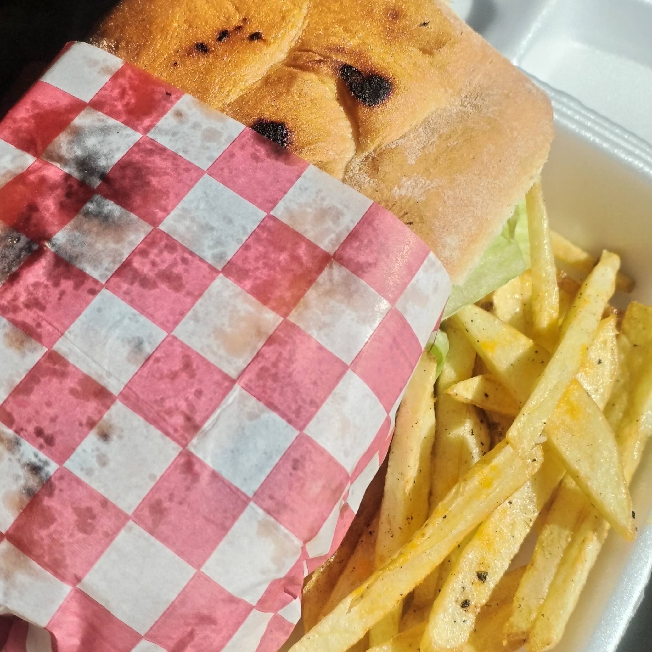 Pan de telera,milanesa de pollo,lechuga, jitomate,aguacate y aderezo de la casa