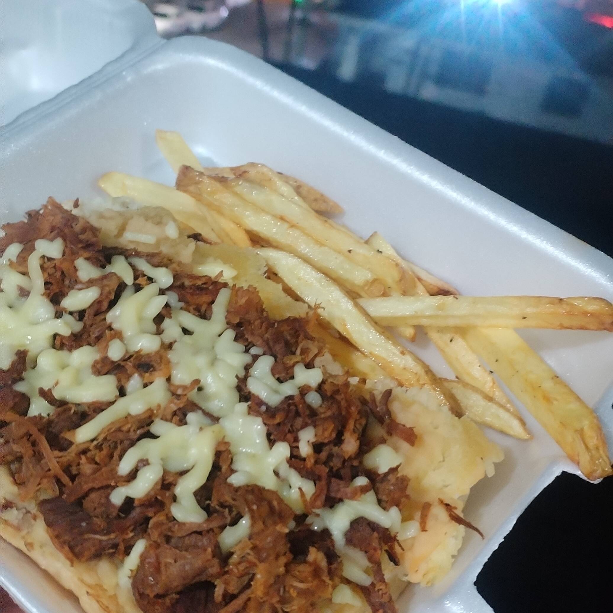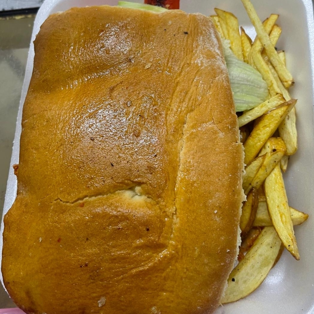 Pan de telera,pierna de cerdo deshebrada en salsa de la casa(no picante),jamon,queso Chihuahua gratinado lechuga, jitomate,jamón,queso Chihuahua gratinado y aderezo de la casa