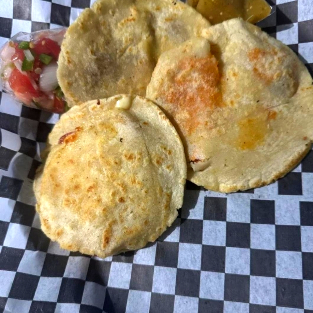 Relleno a elegir (jamón, chorizo casero,rajas,a la mexicana), acompañado de ensalada frijoles e incluye tortillas