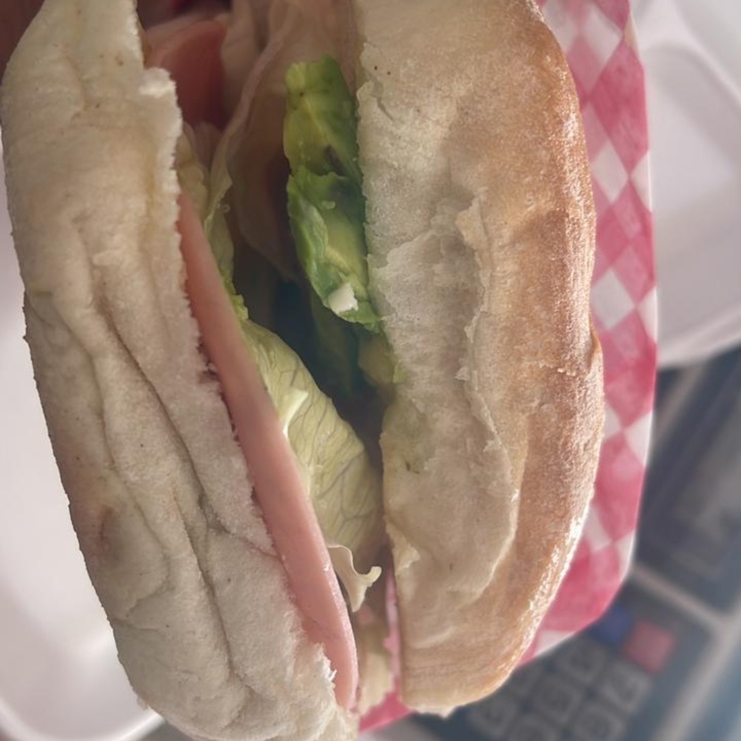 Pan de telera,jamón,queso Chihuahua,carne arrachera, lechuga, tomate, aguacate y aderezo de la casa