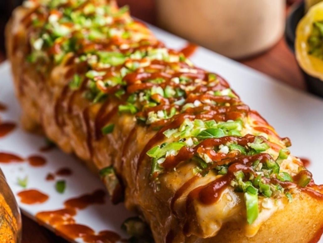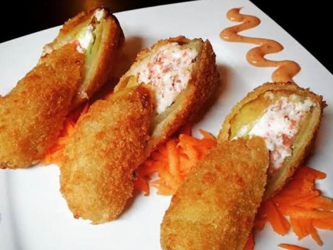 Rollo empanizado con philadelphia, pepino, aguacate, pollo y tocino por dentro. Por fuera queso gratinado spicy con toque de anguila.