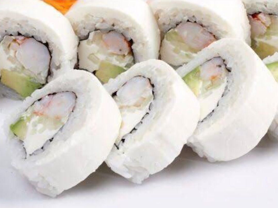 Rollo natural con philadelphia, pepino, aguacate, camarón y pollo por dentro. Por fuera envuelto en aguacate queso gratinado con tocino y toque de salsa de anguila.