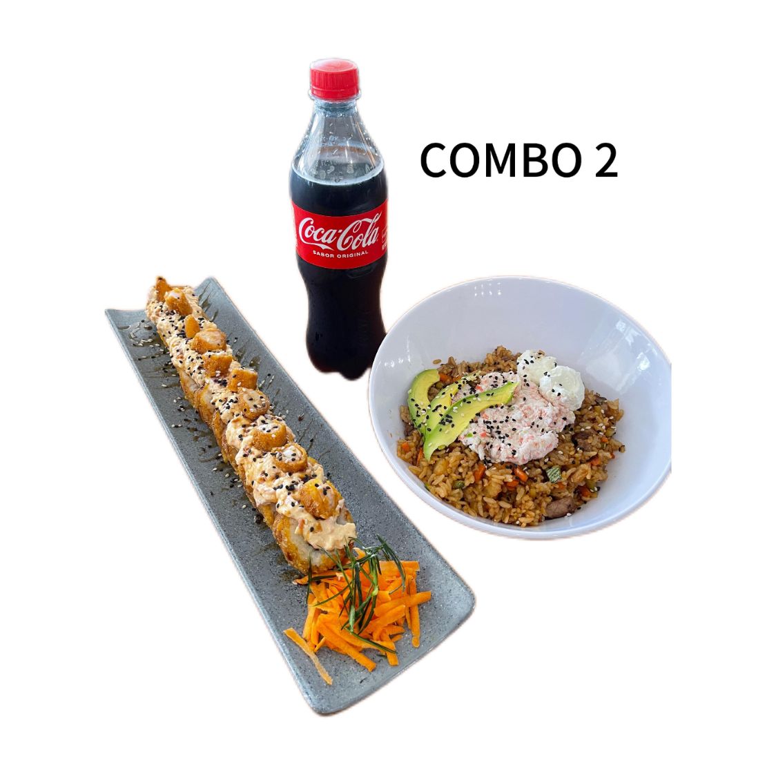 Sushi Camarón Crunch*1 + Yakimeshi Especial*1 + Refresco*1