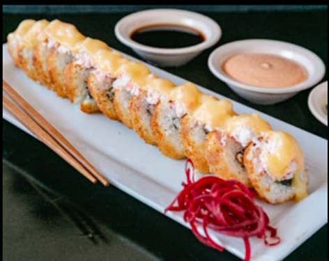 1 rollo de 10 Pzs Por dentro: camarón empanizado, aguacate y pepino. Por fuera: philadelphia, queso chihuahua, chile serrano.