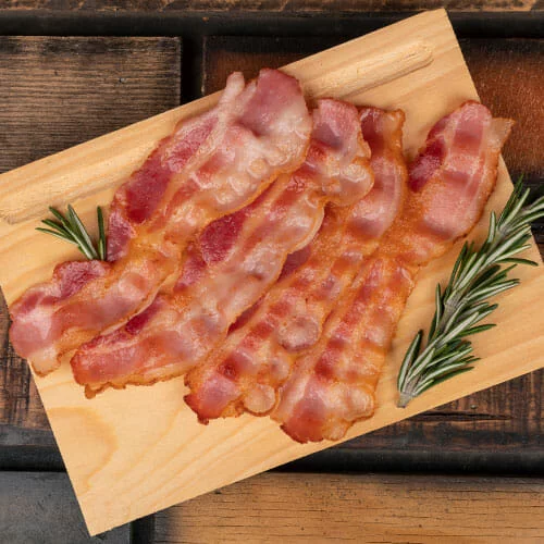 Por dentro: philadelphia, aguacate, pollo. Por fuera: tocino.