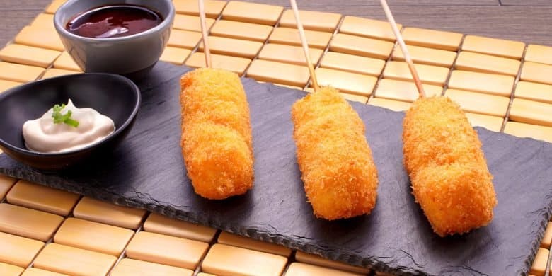 Por dentro: philadelphia, camarón empanizado y pepino.