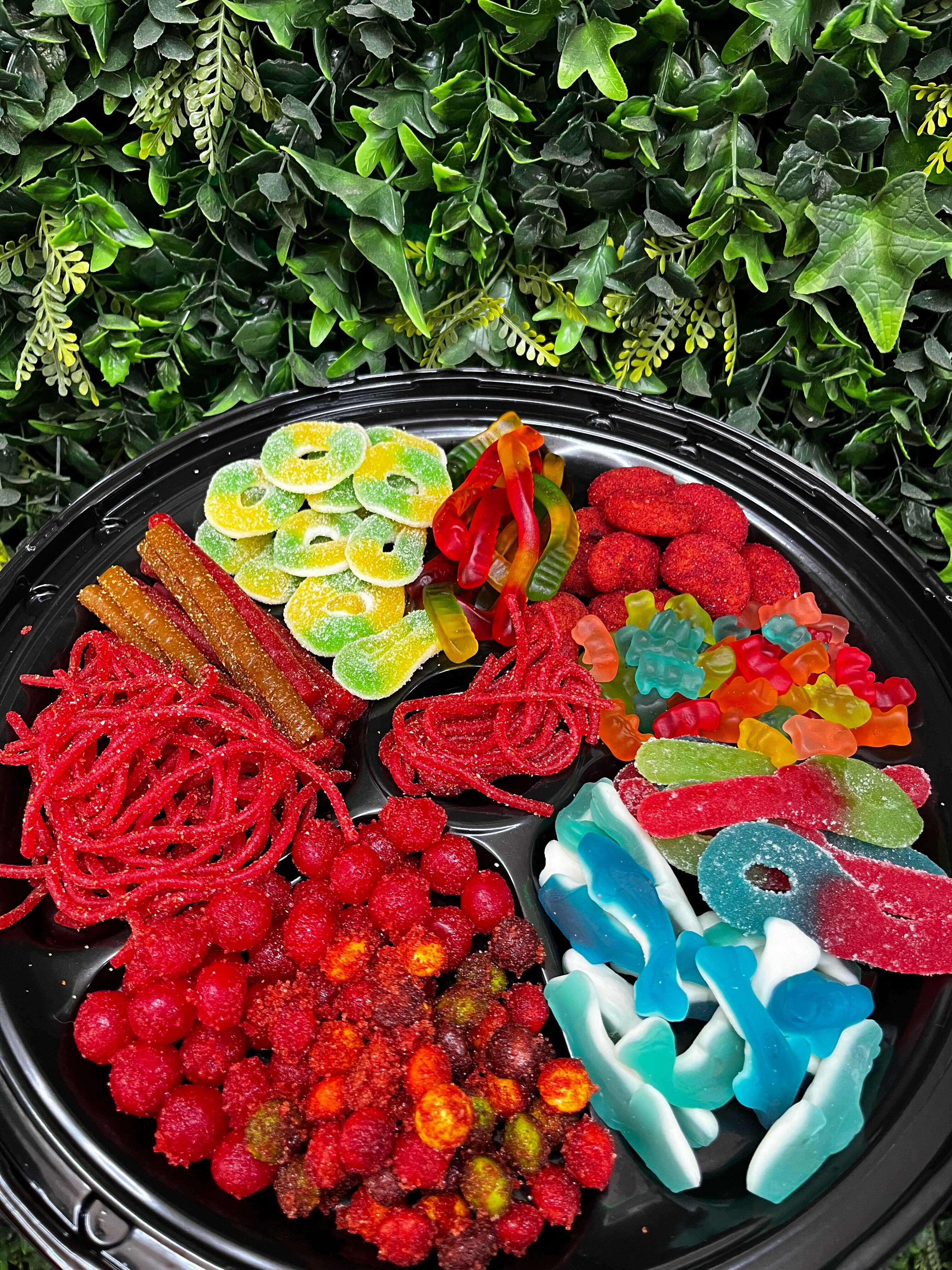 Charola familiar para eventos, puedes elegir 10 topping y van espolvoreadas o nuestro chamoy.
