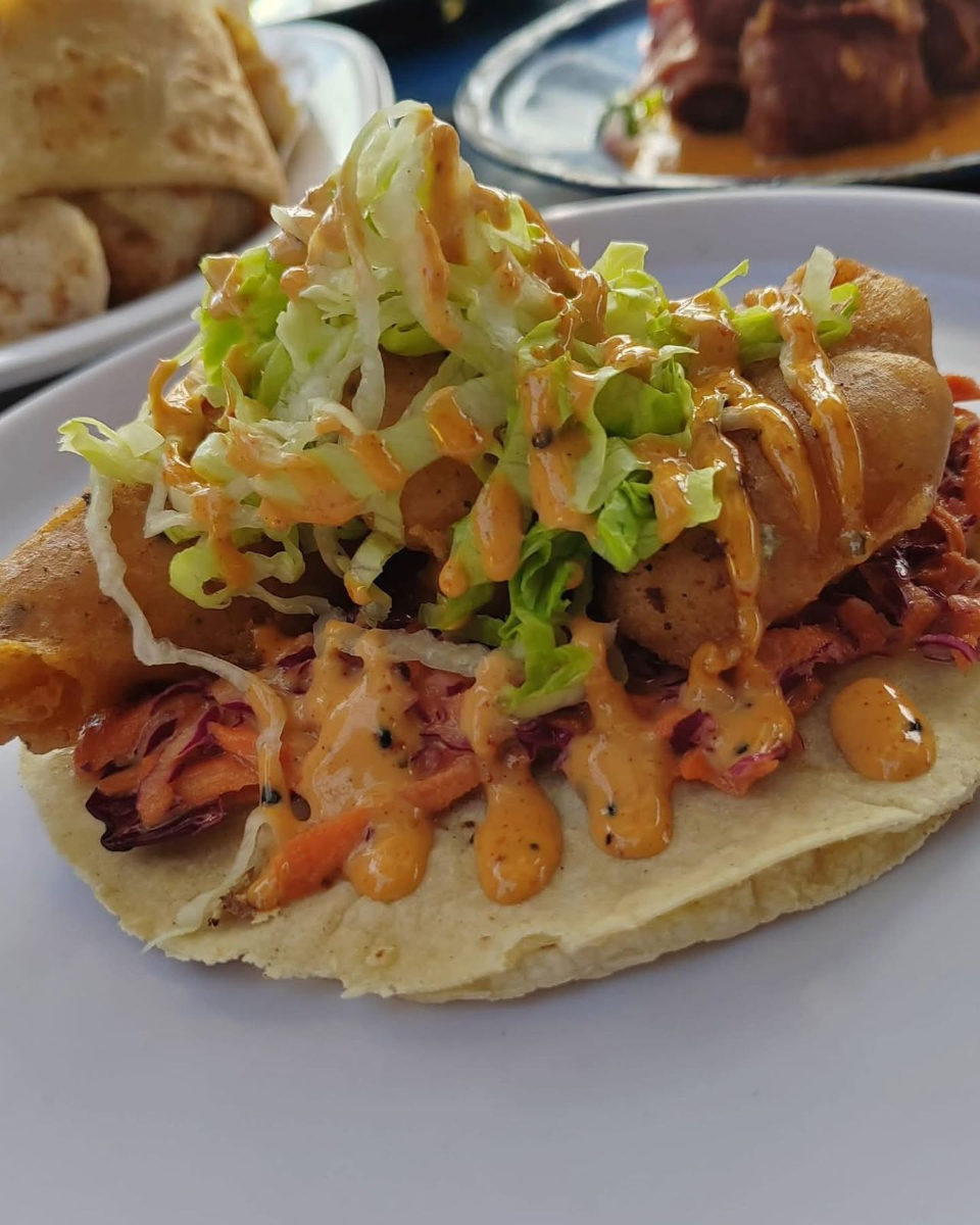 Tacos rellenos de camarón, queso y chile poblano, especialidad de Sinaloa.