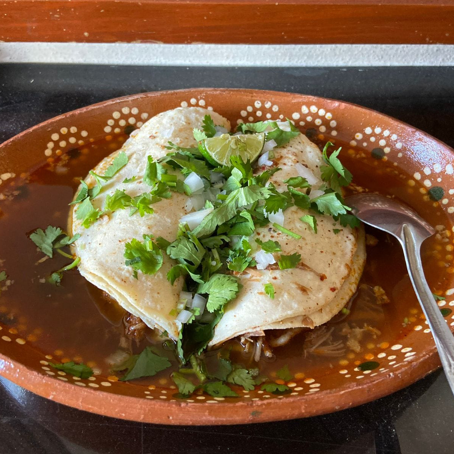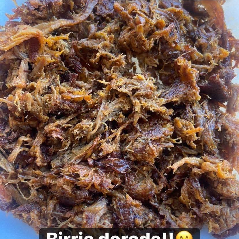 Media orden de Birria seca, acompañado de tortillas y salsa
