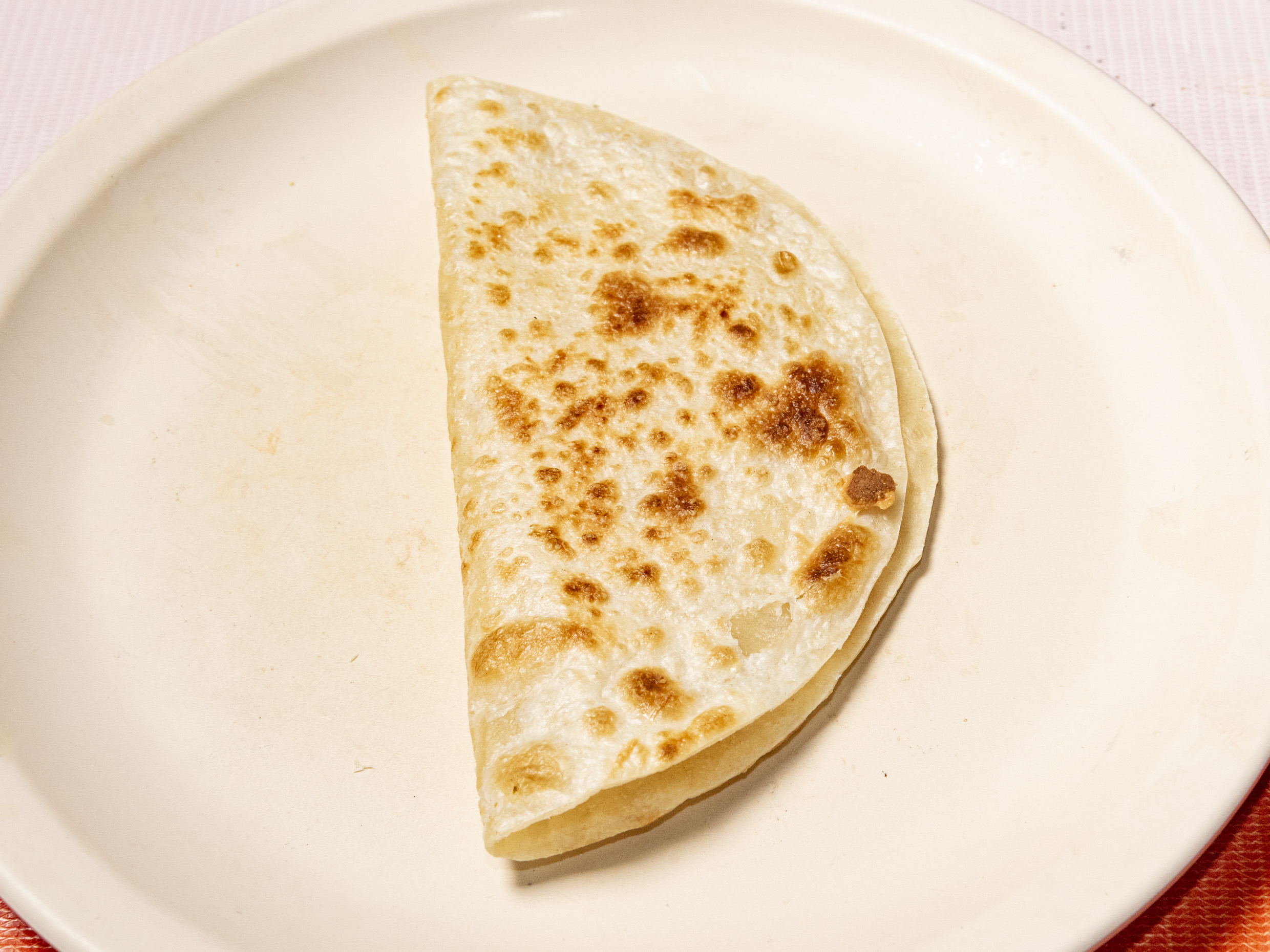 Tortilla de harina con queso oaxaca derretido s/carne