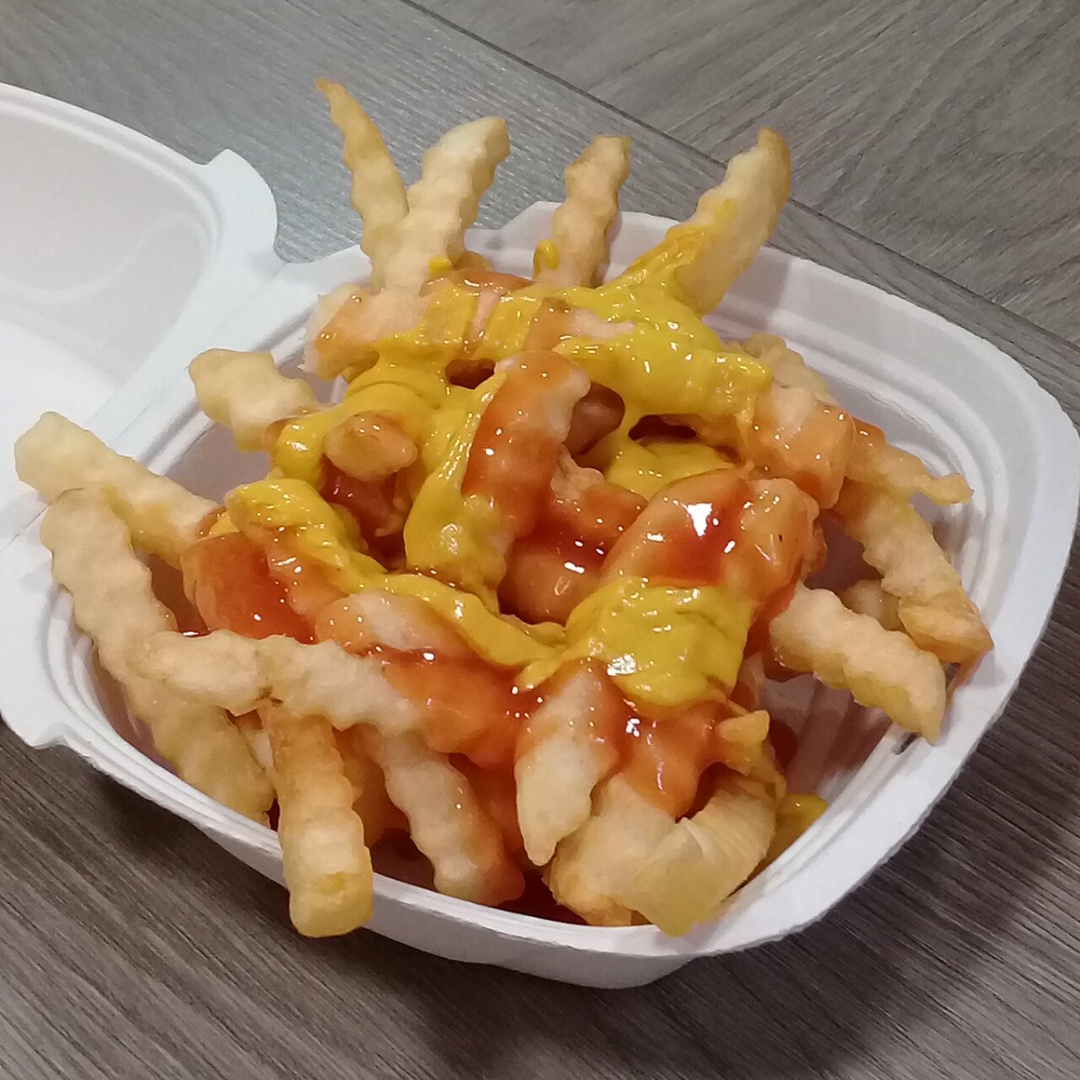 Papas Francesas Onduladas con Crema, Mayonesa, Captsu, Queso Amarillo. (A preferencia).