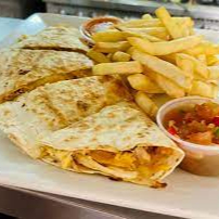 Tortilla de harina, Queso Chihuahua, Carne de Pierna, Cebolla, Cebillita asada, Tomate, Lechuga, Crema, Mayonesa, Mostaza.