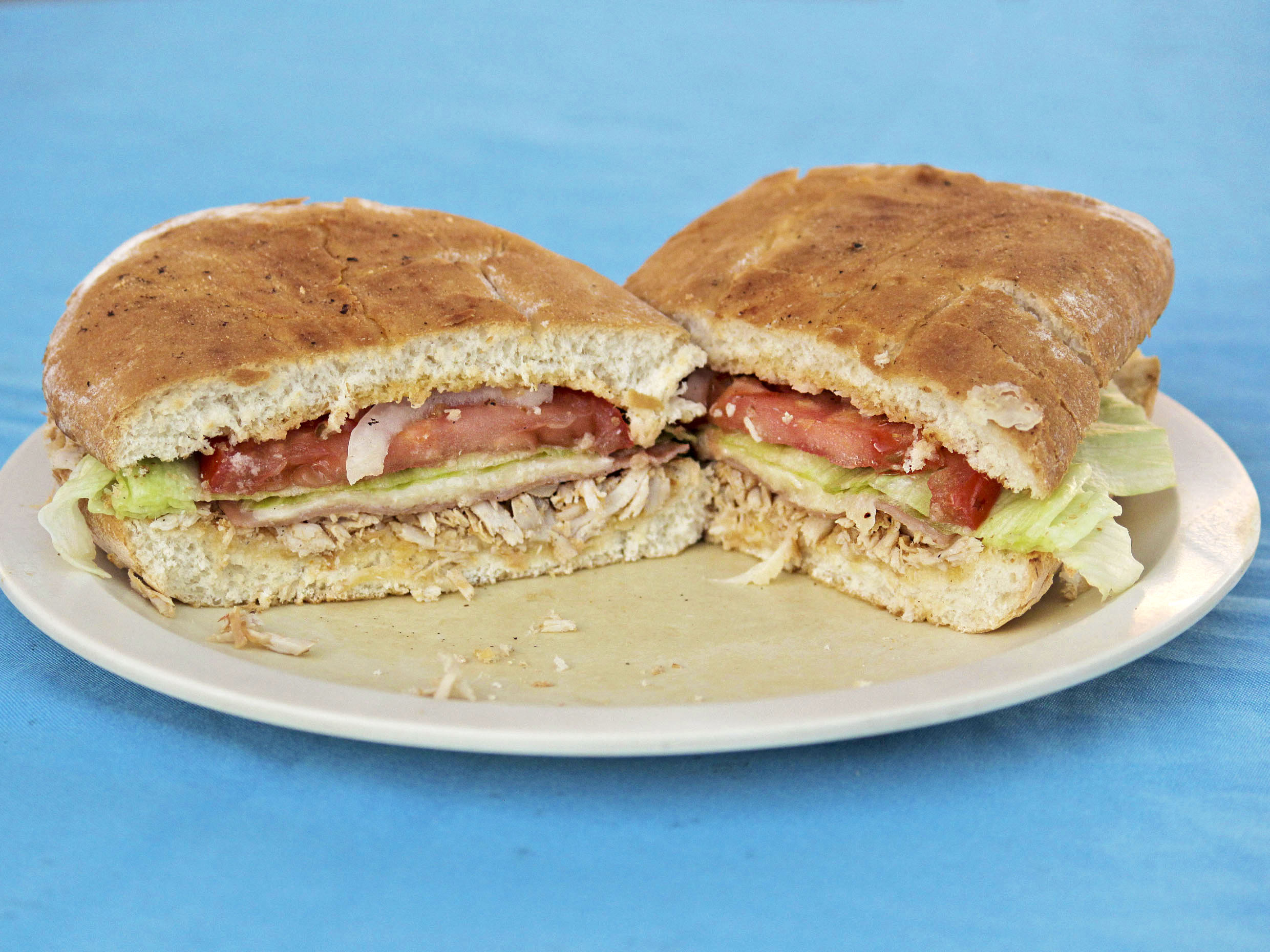 Pierna, jamón, queso chihuahua, aguacate y tocino incluye papás a la francesa