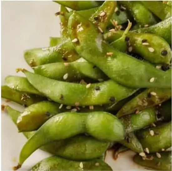 Edamames servidos en vaina, salteados con nuestra salsa house agridulce y un toque de ajonjolí.