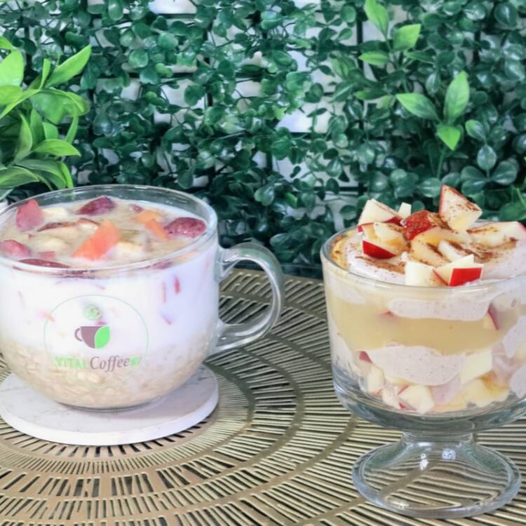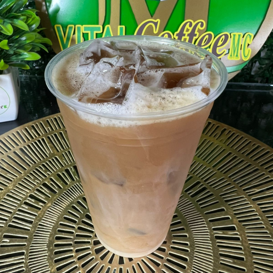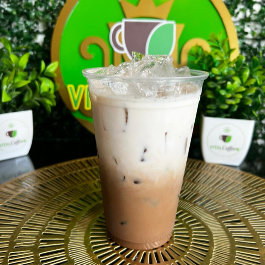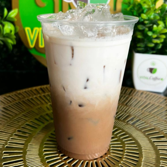 Preparado con nuestro cafe gourmet arabico de Vital Health servido sobre leche cremosa. Regular, Moka, Vainilla, Caramelo, Avellana, Crema Irlandesa, Amaretto