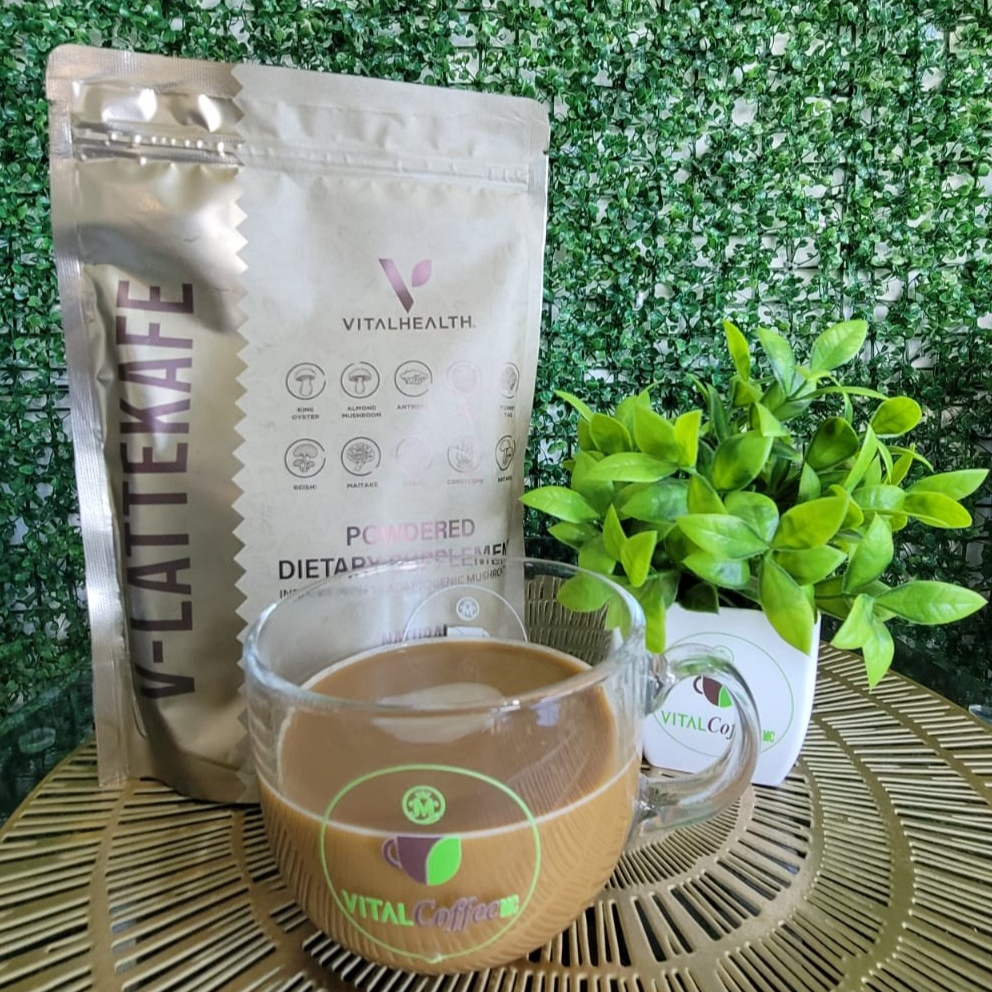 ☕ V-LatteKafe – Café 12oz. + Lion’s Mane & Reishi Con 10 hongos medicinales, entre ellos Lion’s Mane para tu memoria y Reishi para tu inmunidad. Una taza que te da energía limpia, claridad mental y defensas fuertes.