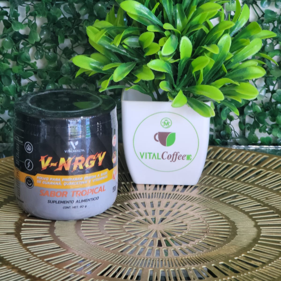 Polvo parta preparar Bebida Energética natural, rinde 30 bebidas, 🥭 V-NRGY Refrescante 16oz- Bebida energizante natural con delicioso sabor a mango. Apoya tu vitalidad, mejora el enfoque y eleva el estado de ánimo gracias a su combinación de cafeína natural de café verde, guaraná, té verde, L-carnitina, cúrcuma y vitaminas del grupo B. ¡Una opción refrescante para impulsar tu día..