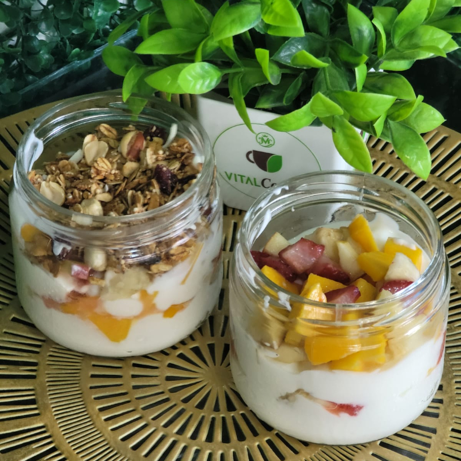 Yoghurt Griego NaturalVariedad de frutas de Temporada, en vaso de 1/2 litro